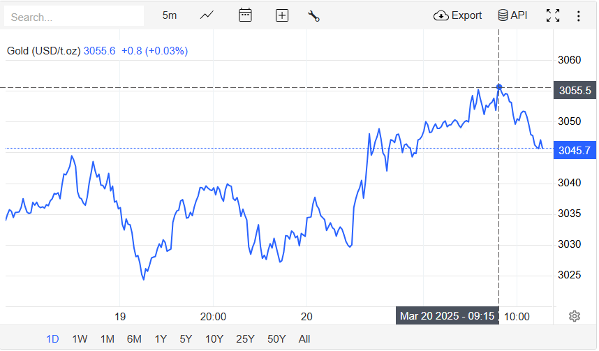 On the early morning of March 20th, the Federal Reserve announced that it would keep the benchmark interest rate unchanged in the range of 4.25% -4.5%, and hinted that it may cut interest rates twice this year. This decision is in line with market expectations, but the economic forecast released after the meeting and Powell’s statement still caused market volatility. Affected by this, the spot gold price surged to a record high of $3055.6 per ounce in the short term, while the US dollar index fell under pressure.