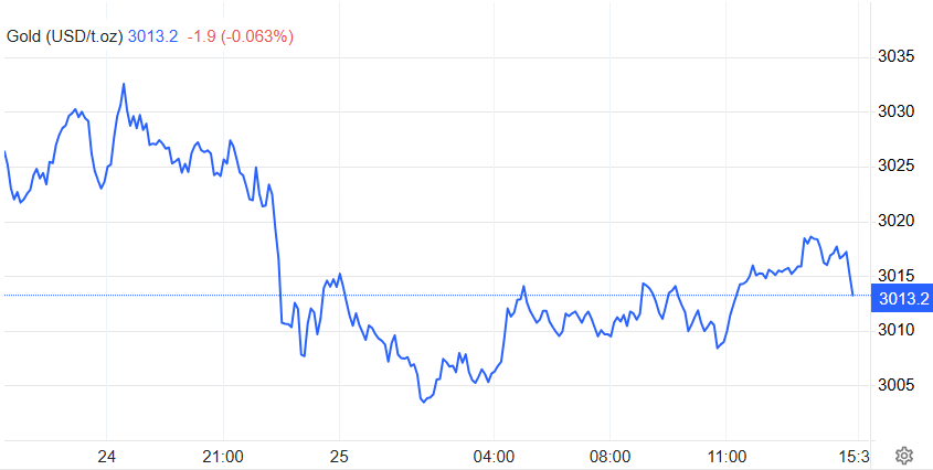 近日,美元指數延續反彈態勢,對國際金價形成顯著壓制。 衡量美元對六種主要貨幣匯率的美元指數從104.17低位震盪上行,最終收於104.258,單日漲幅0.16%。 受此影響,現貨黃金價格自歷史高位3050美元/盎司附近持續回落,一度逼近3000美元整數關口,累計調整幅度近50美元。 市場人士指出,美元走强疊加短期獲利了結,是此輪金價調整的主要動因,但中長期支撐黃金的覈心邏輯未變。